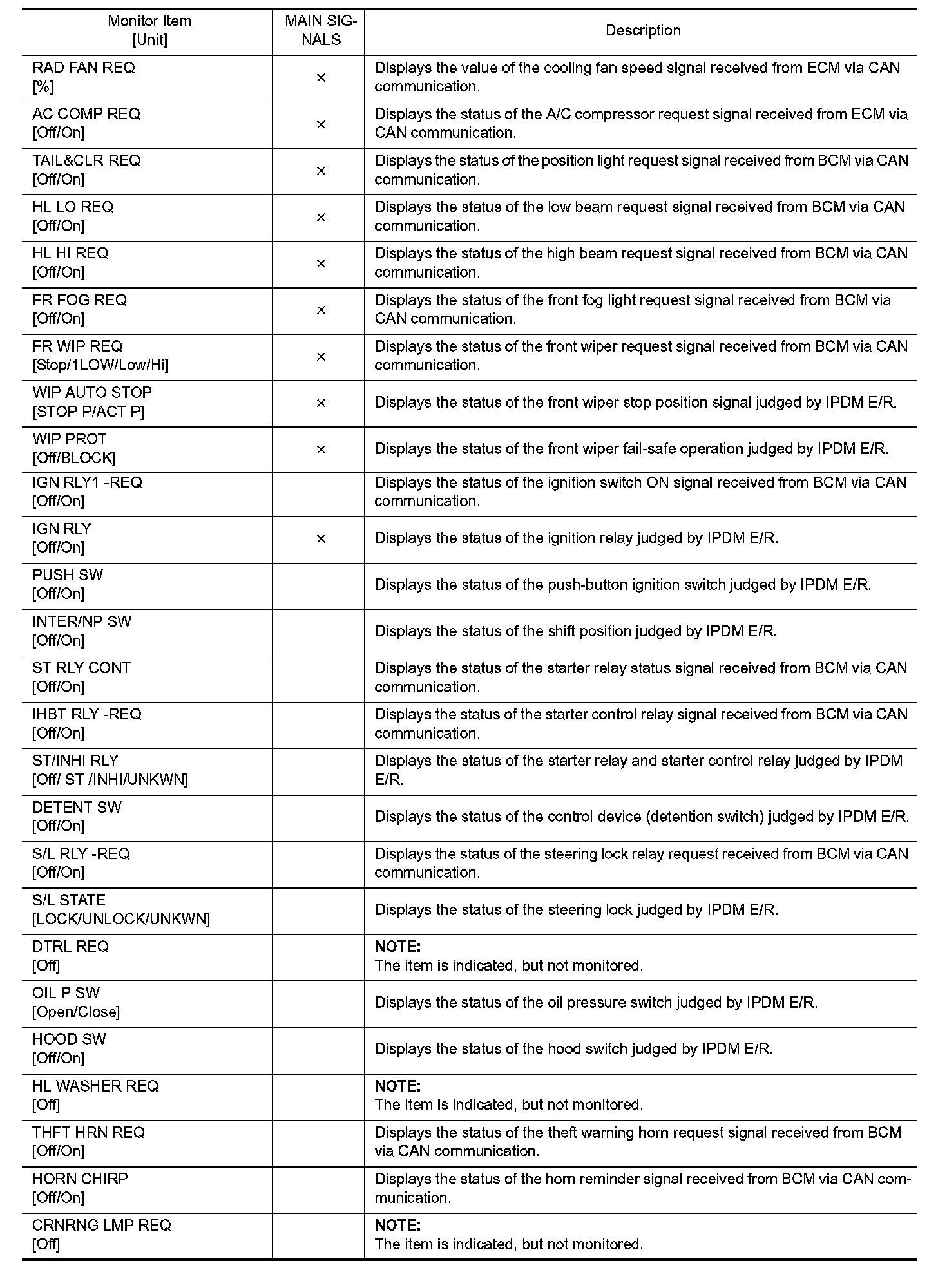 CONSULT-III performs the following functions via CAN communication with IPDM E/R.