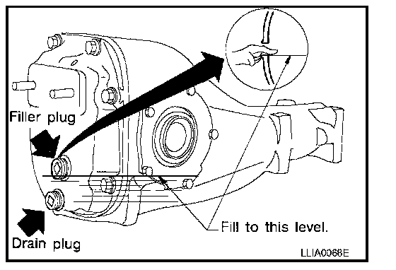 1. Check the differential gear oil level from the filler plug hole as shown.