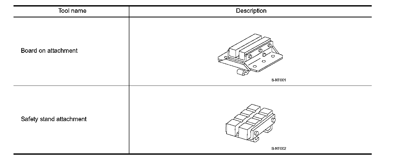 - Since the vehicle's center of gravity changes when removing main parts on the front side (engine, transmission, suspension etc.), support a jack up point on the rear side garage jack with a mission jack or equivalent.