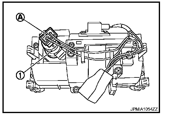 2. Disconnect power socket connector (A) from reverse side inner socket (1).