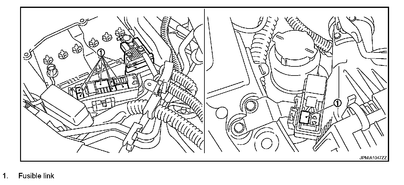 - If fusible link should melt, it is possible that critical circuit (power supply or large current carrying circuit) is shorted. In such a case, carefully check and eliminate cause of malfunction.