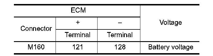 2. Check the voltage between ECM harness connector terminals under the following conditions.