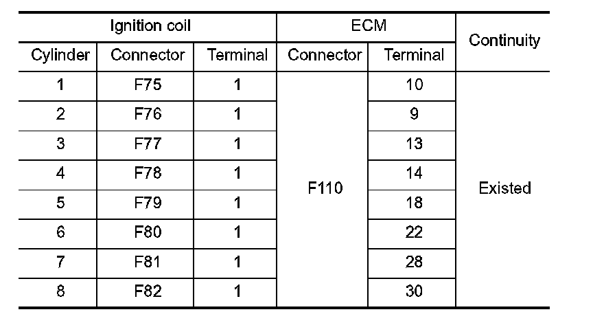 2. Check the continuity between ignition coil harness connector and ECM harness connector.