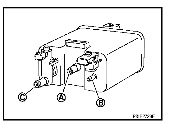2. Blow air into port (A) and check that it flows freely out of port (C).