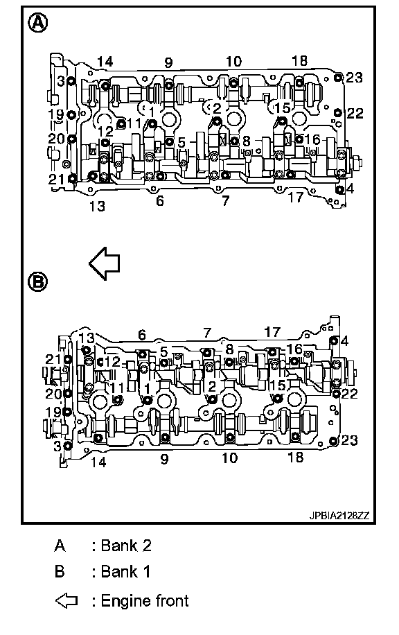 Completely loosen all cylinder head bolts in the reverse order.
