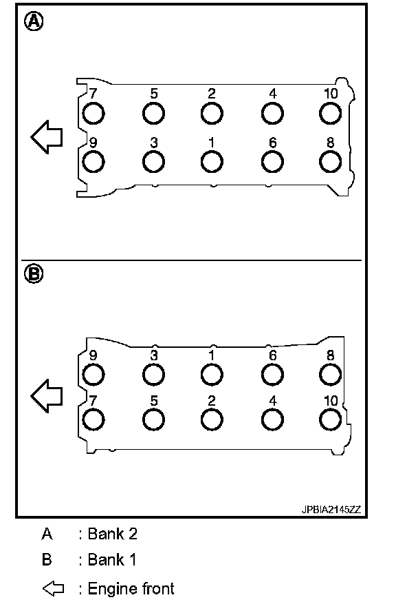 Cylinder headIf cylinder head bolts are re-used, check their outer diameters before installation. Whenever the size difference between (B) and (A) exceeds the limit, replace them with new one