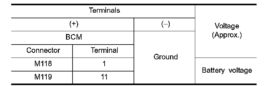 3. Check voltage between BCM harness connector and ground.