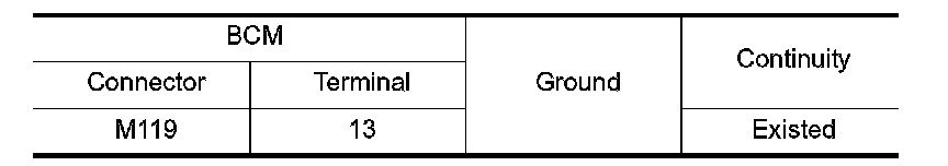 Check continuity between BCM harness connector and ground.