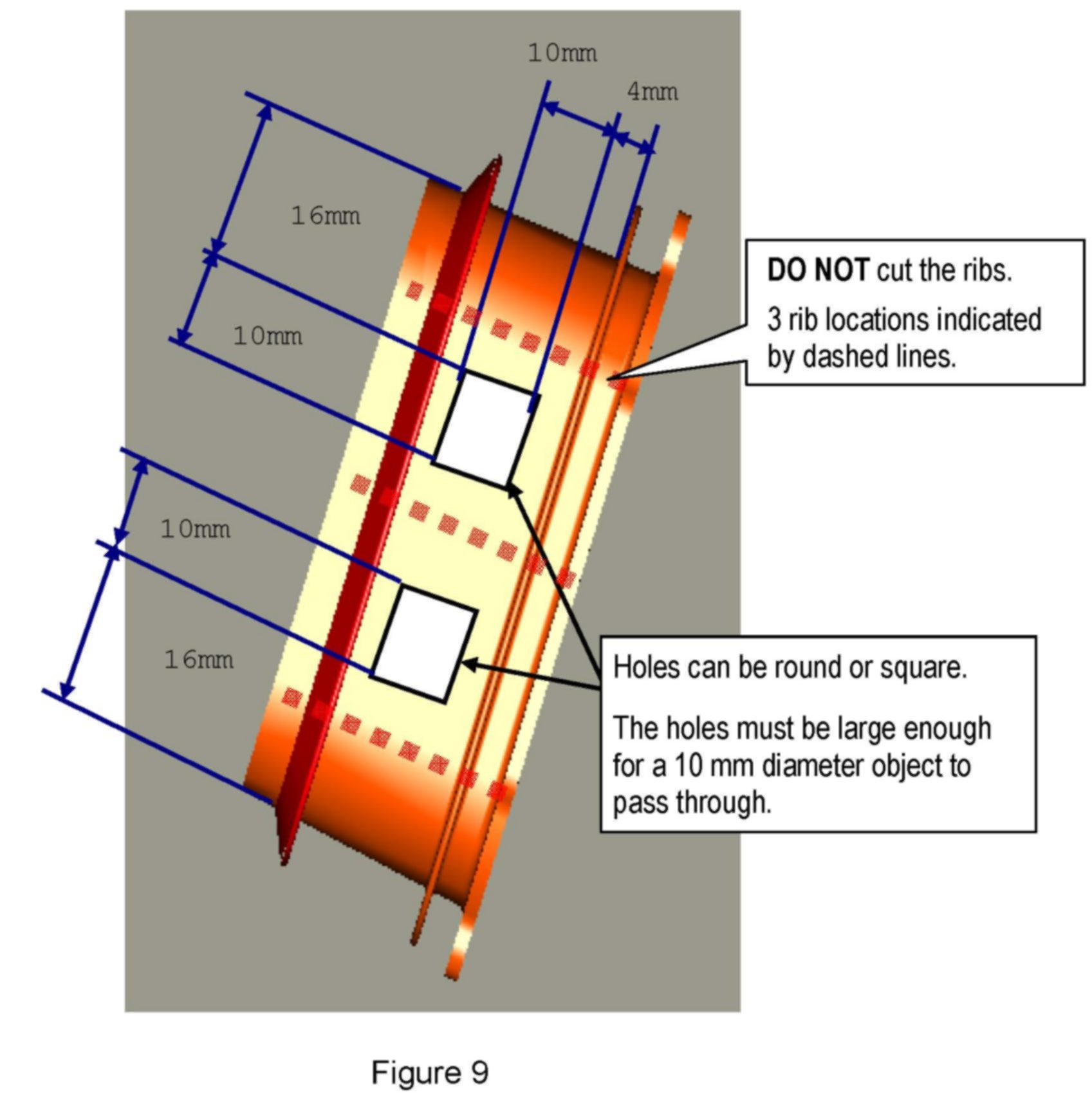 ^ The holes must be large enough for a 10 mm diameter object to pass through.
