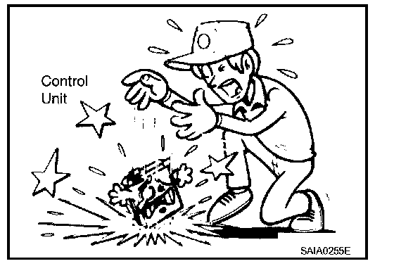 - When using a DMM, be careful not to let test probes get close to each other to prevent the power transistor in the control unit from damaging battery voltage because of short circuiting.