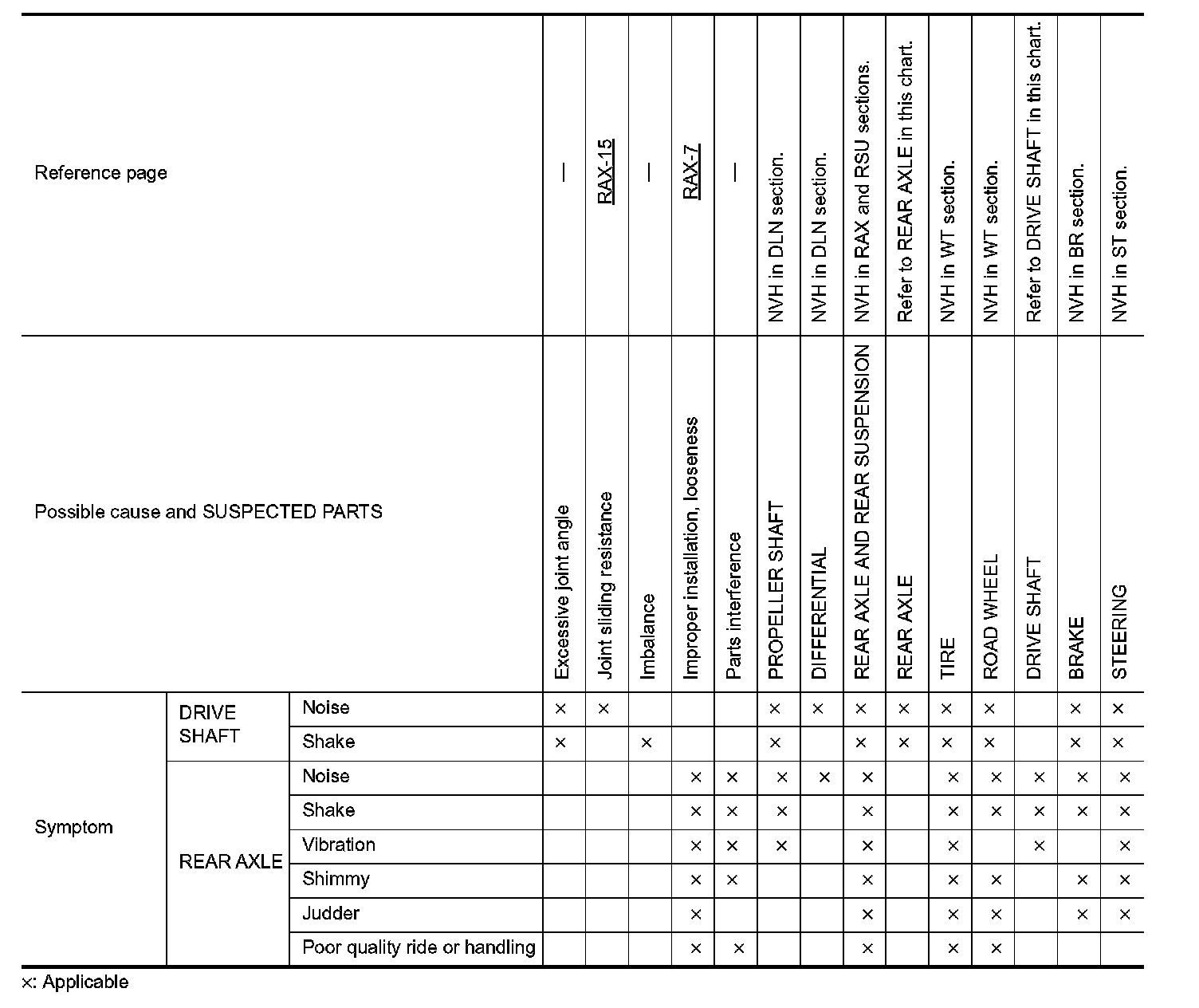 Rear Axle NVH Troubleshooting Chart