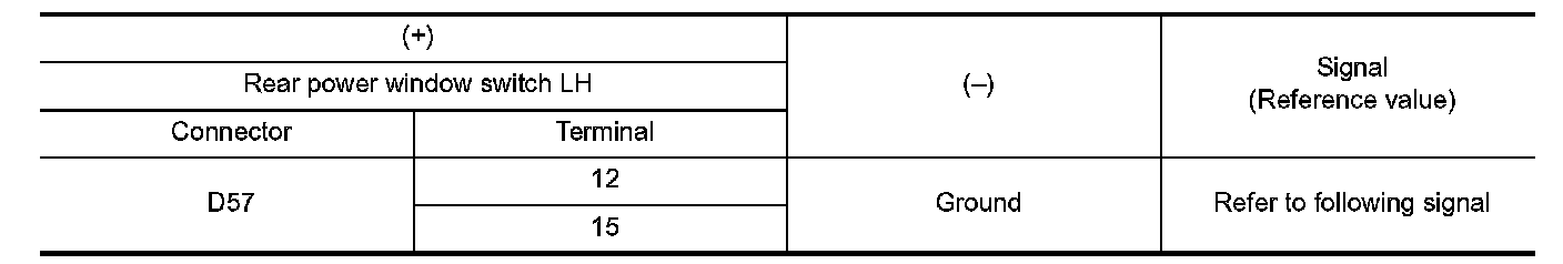 2. Check signal between rear power window switch LH harness connector and ground with oscilloscope.