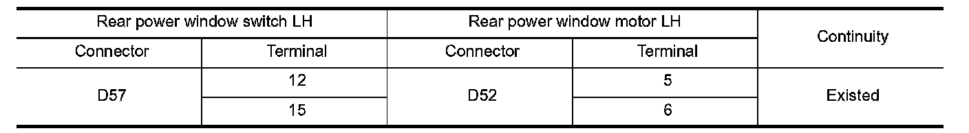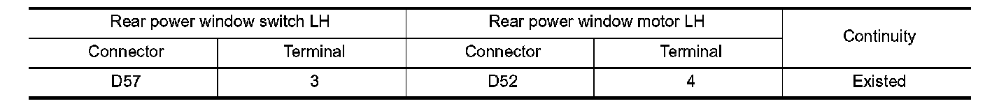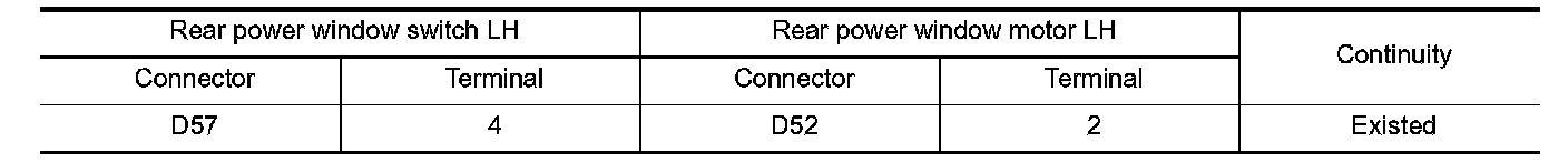 2. Check continuity between rear power window switch LH harness connector and rear power window motor
