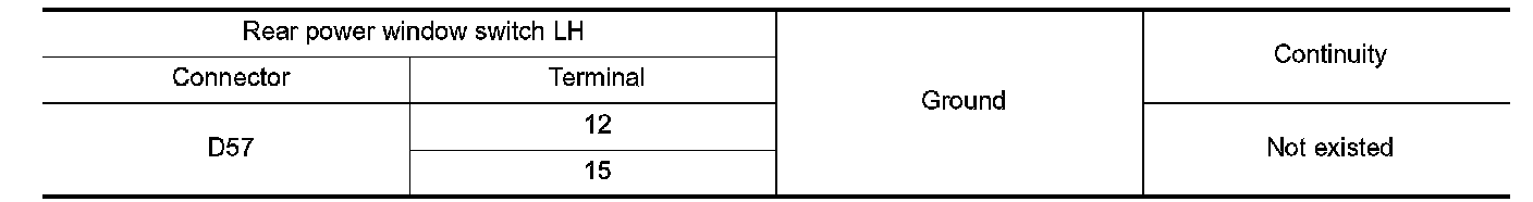 4. Check continuity rear power window switch LH harness connector and ground.