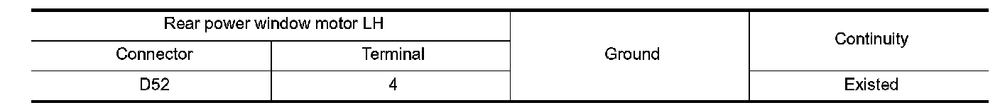 2. Check continuity between rear power window motor LH harness connector and ground.