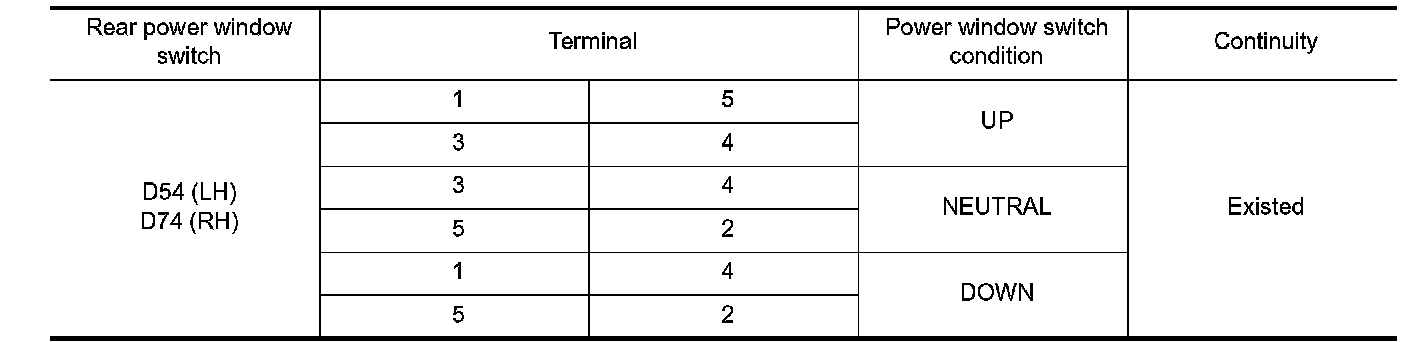 1.CHECK REAR POWER WINDOW SWITCH