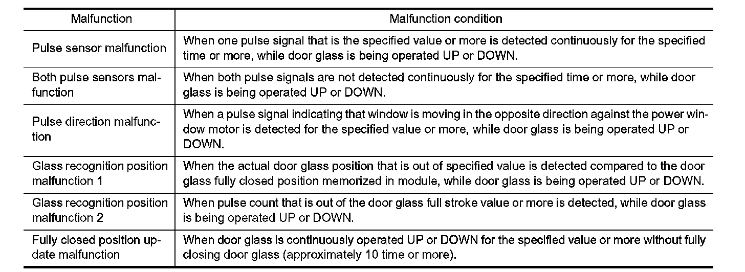 When fail-safe control is activated, perform initialization procedure to recover. If a malfunction is detected in power window switch or more, fail-safe control is activated again.