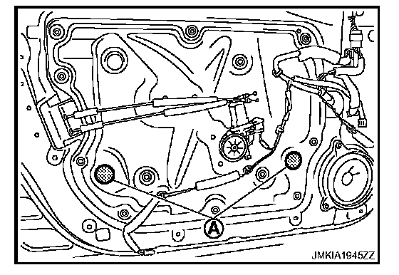 1. Remove front door finisher. Refer to Removal and Installation.