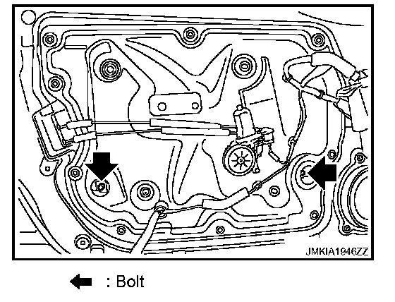 7. Remove the front door glass mounting bolts.