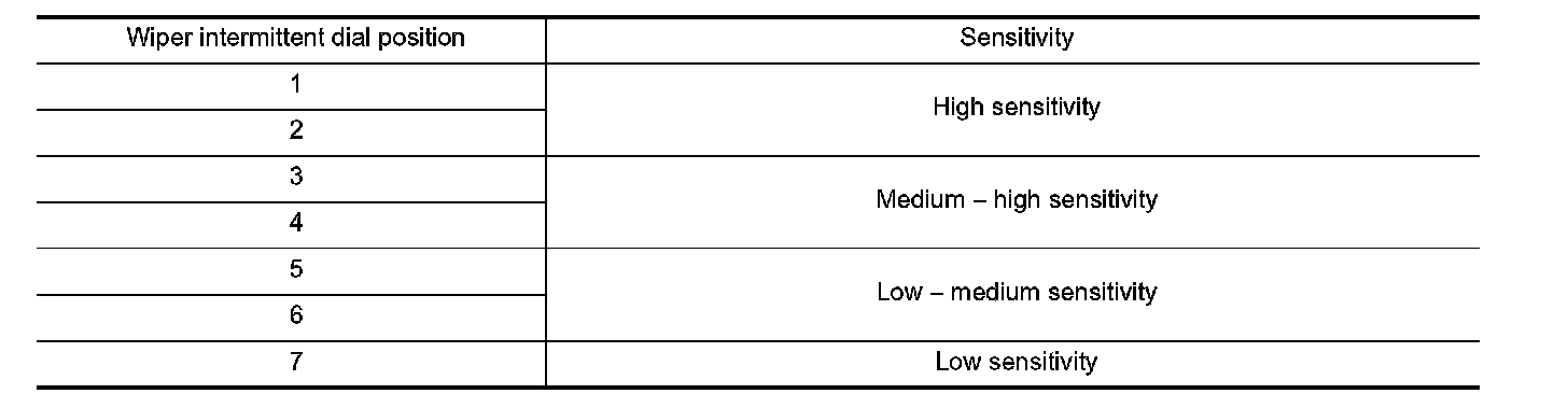 - Rain sensor judges a wiping speed for front wiper by rain condition and the vehicle conditions. And it transmits the wiping speed request signal to the BCM via the rain sensor serial link.