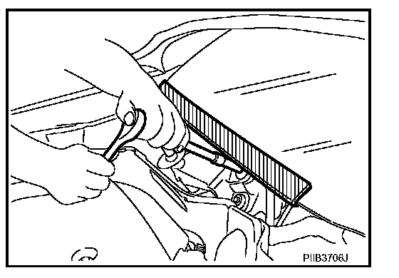 When performing the procedure after removing cowl top cover, cover the lower end of windshield with urethane, etc.