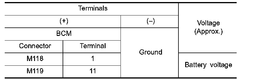 3. Check voltage between BCM harness connector and ground.