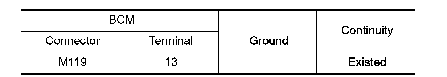 Check continuity between BCM harness connector and ground.