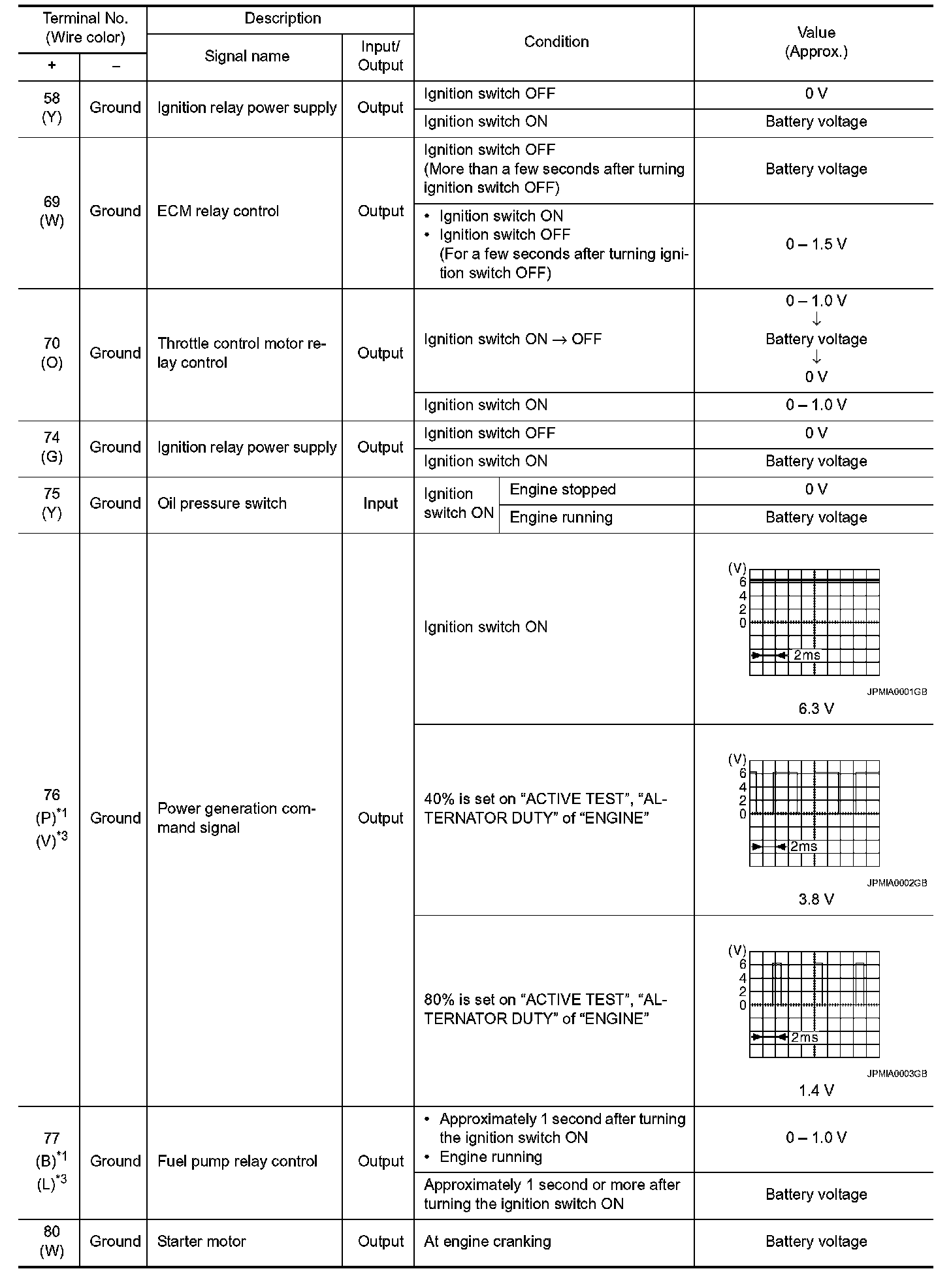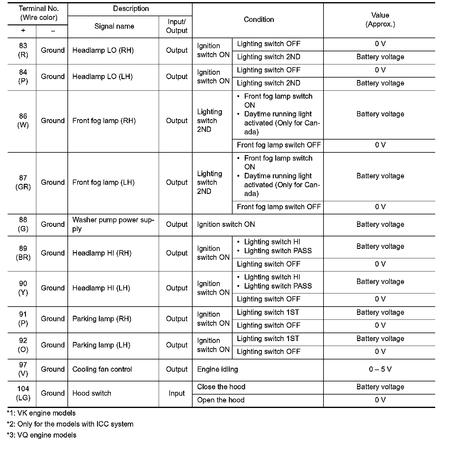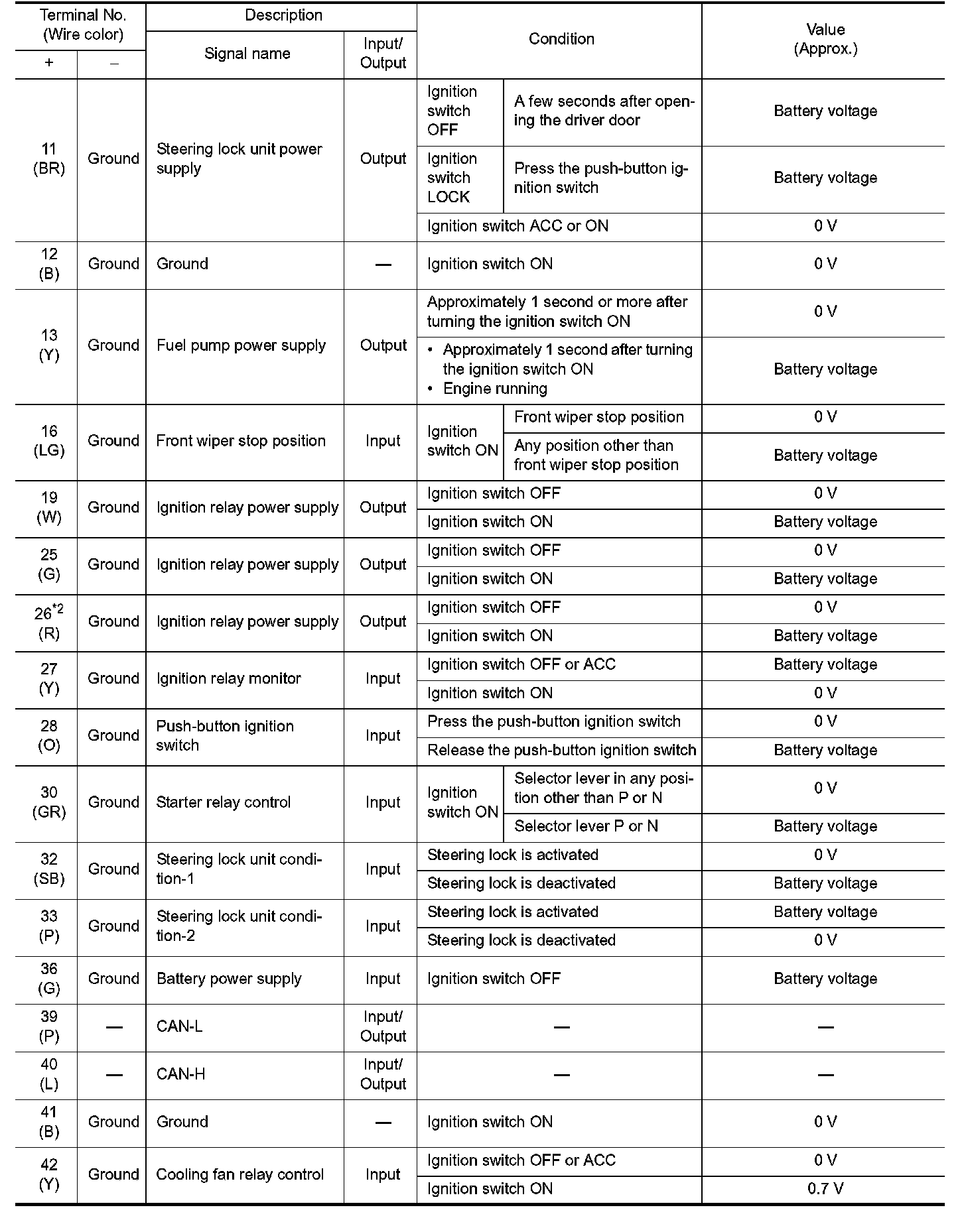Pinout Values and Diagnostic Parameters