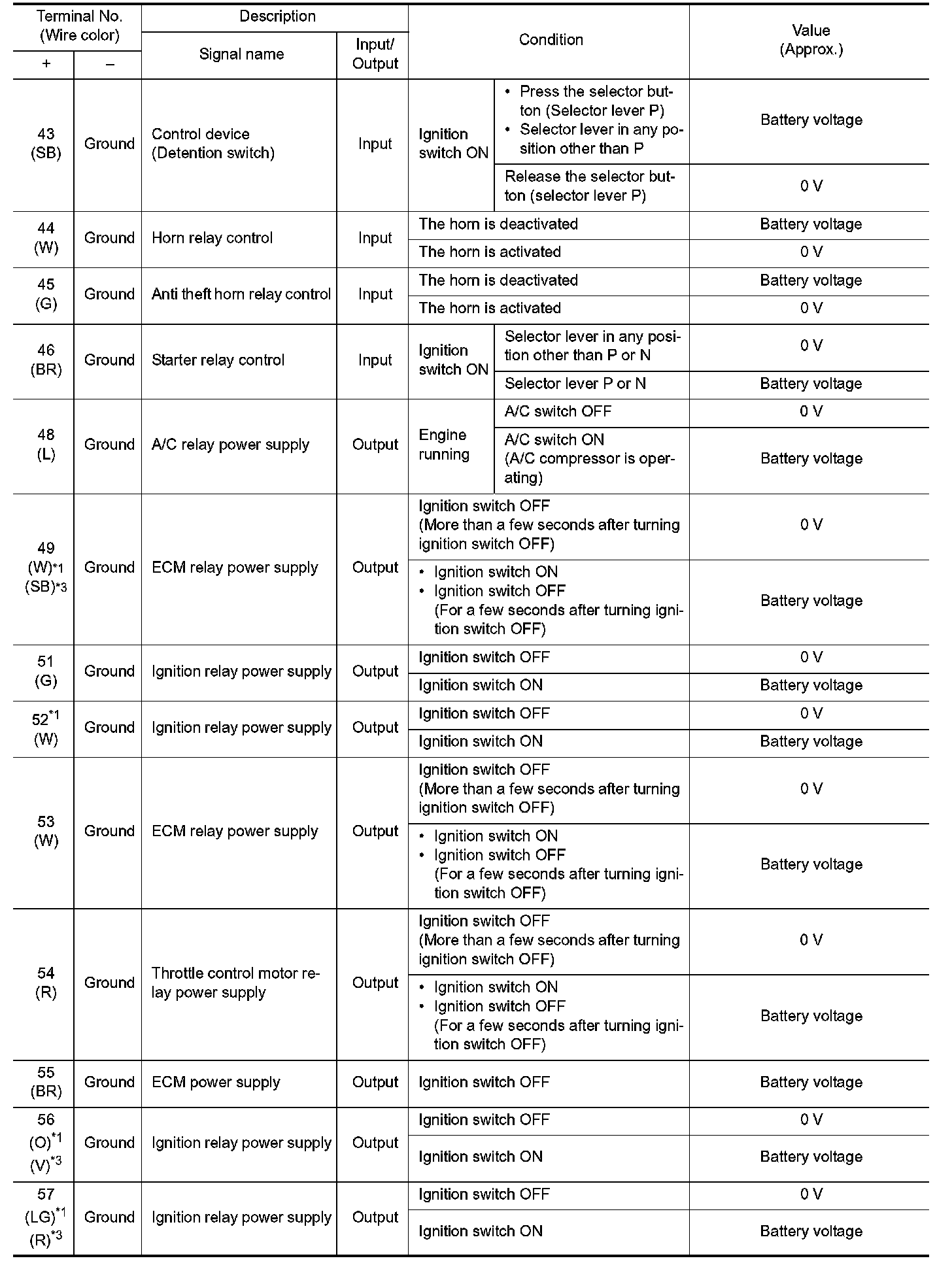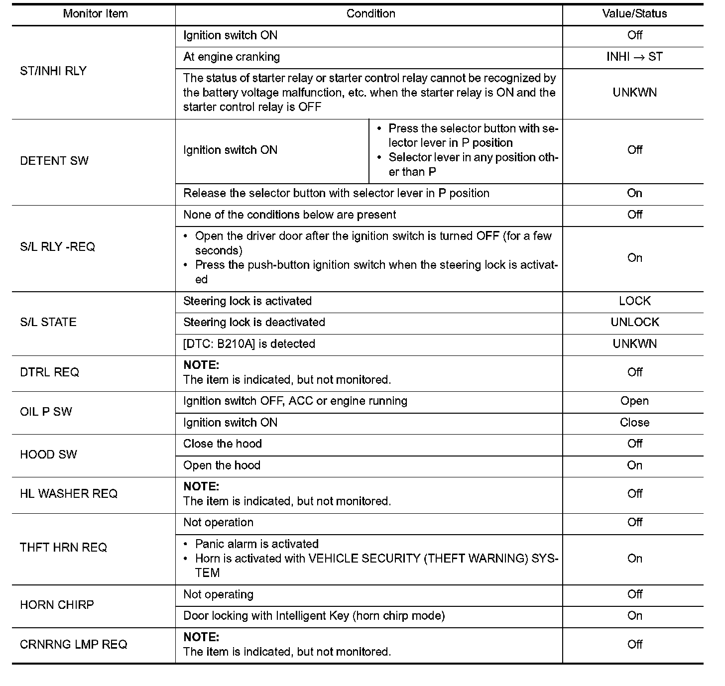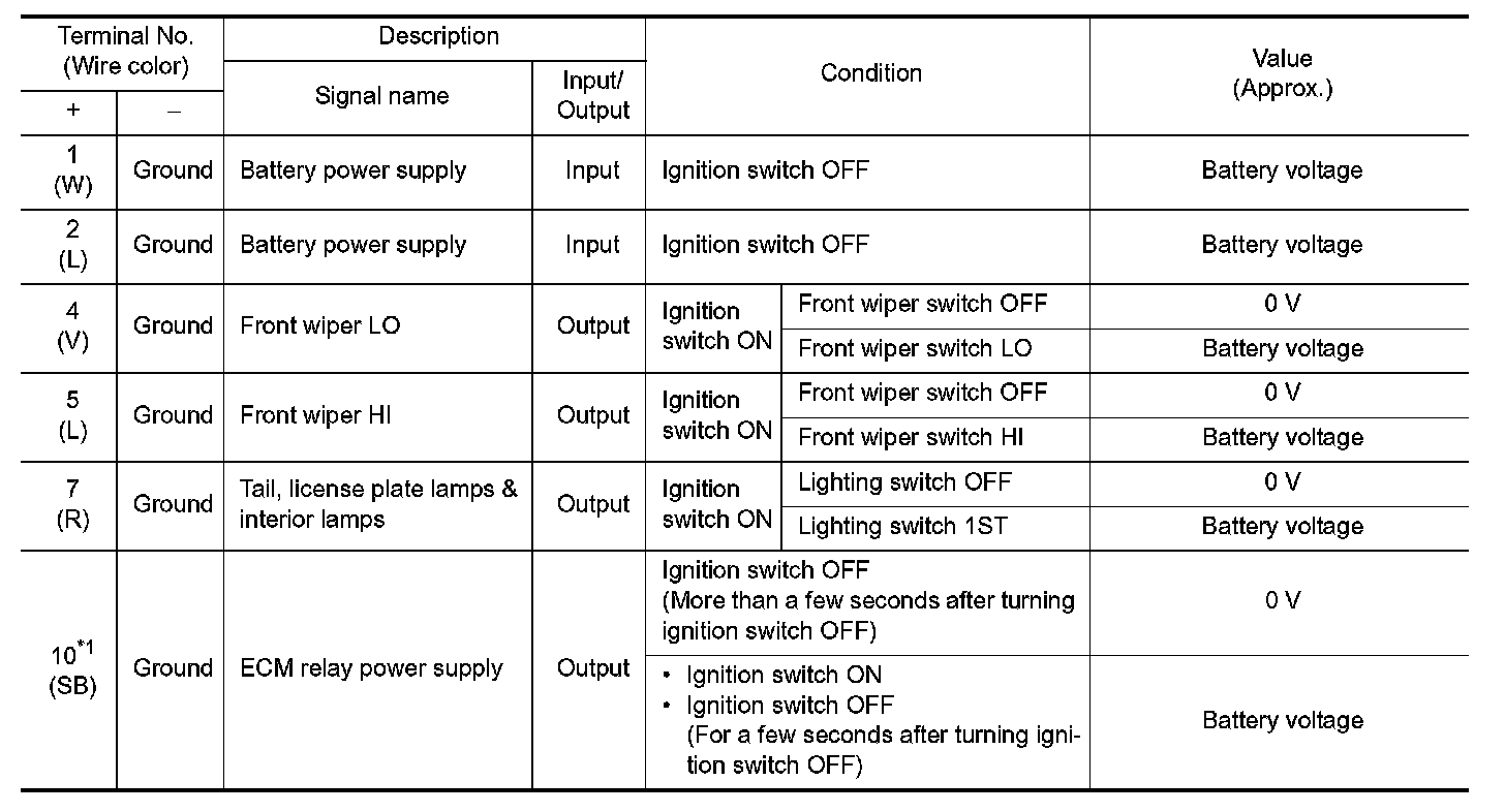 Pinout Values and Diagnostic Parameters