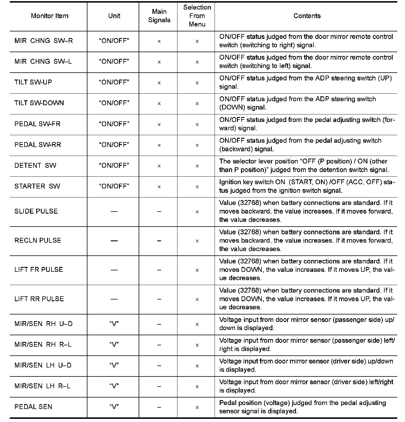 DIAGNOSIS SYSTEM (DRIVER SEAT C/U)
