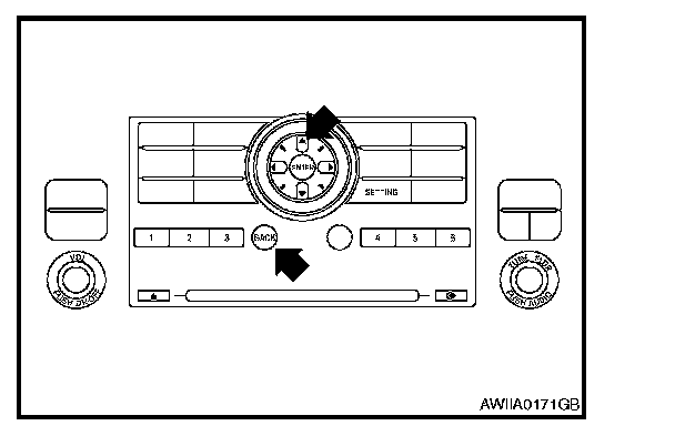 - Press the "BACK" button and the "UP" button within 10 seconds after turning the ignition switch from OFF to ACC and hold them for