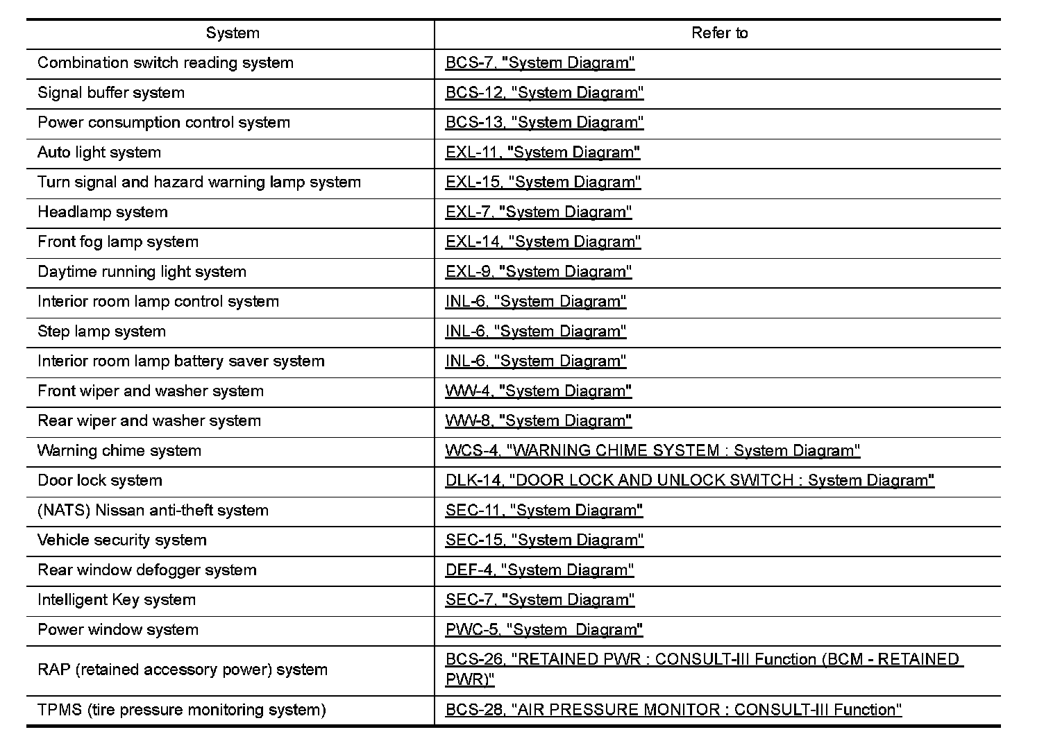 - BCM is equipped with the diagnosis function that performs the diagnosis with CONSULT-III and various settings.