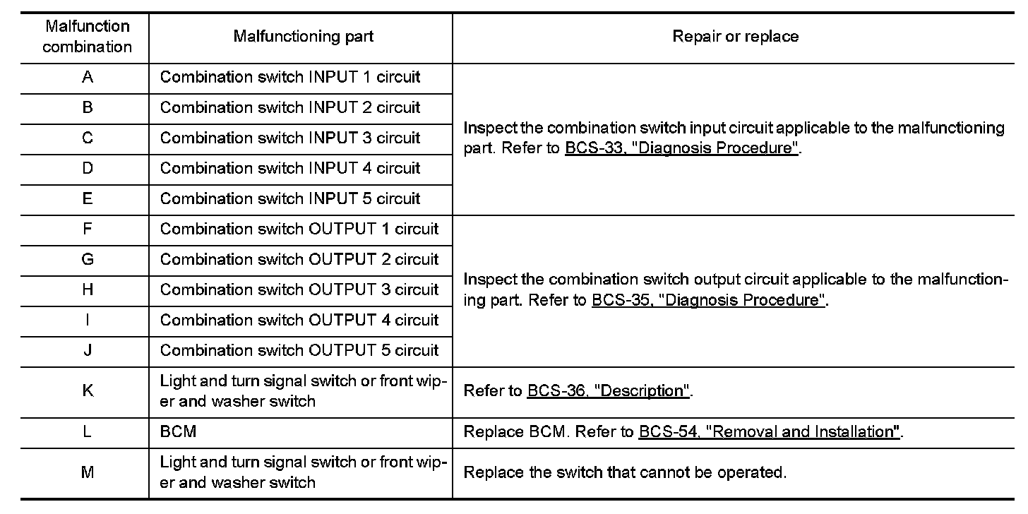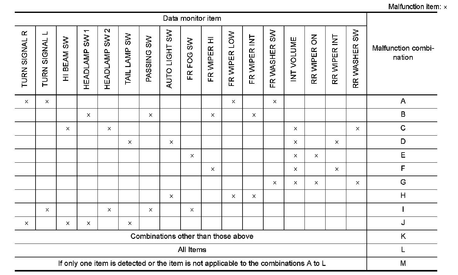 2. Check the malfunction combinations.
