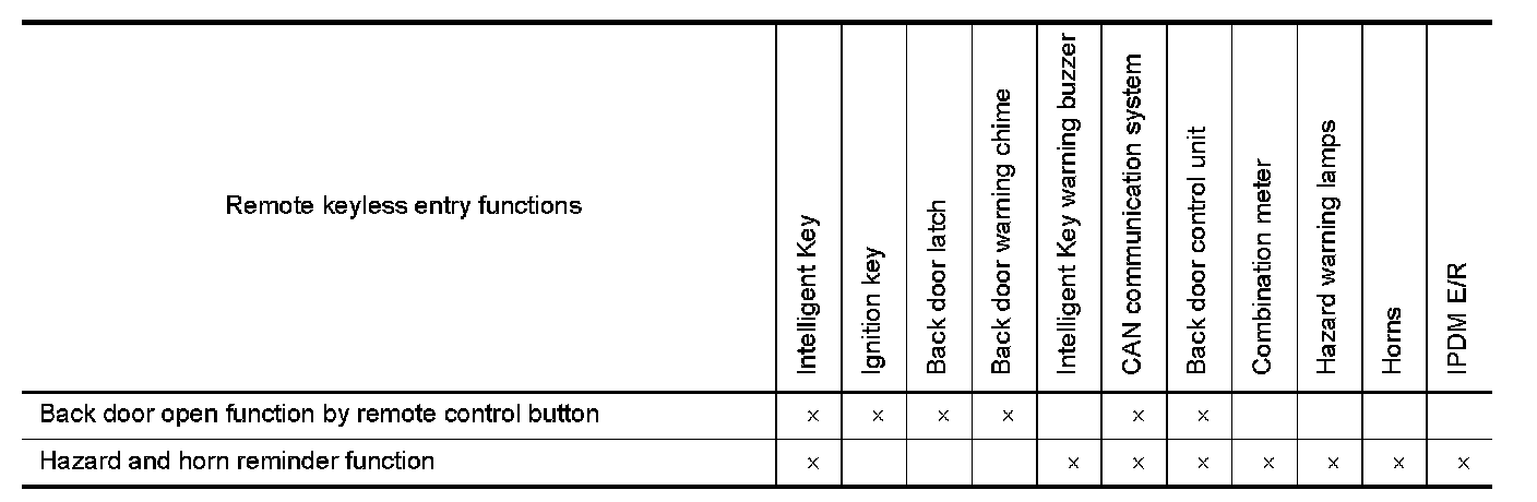 Intelligent Key to the back door control unit via remote keyless entry receiver and the Intelligent Key unit.