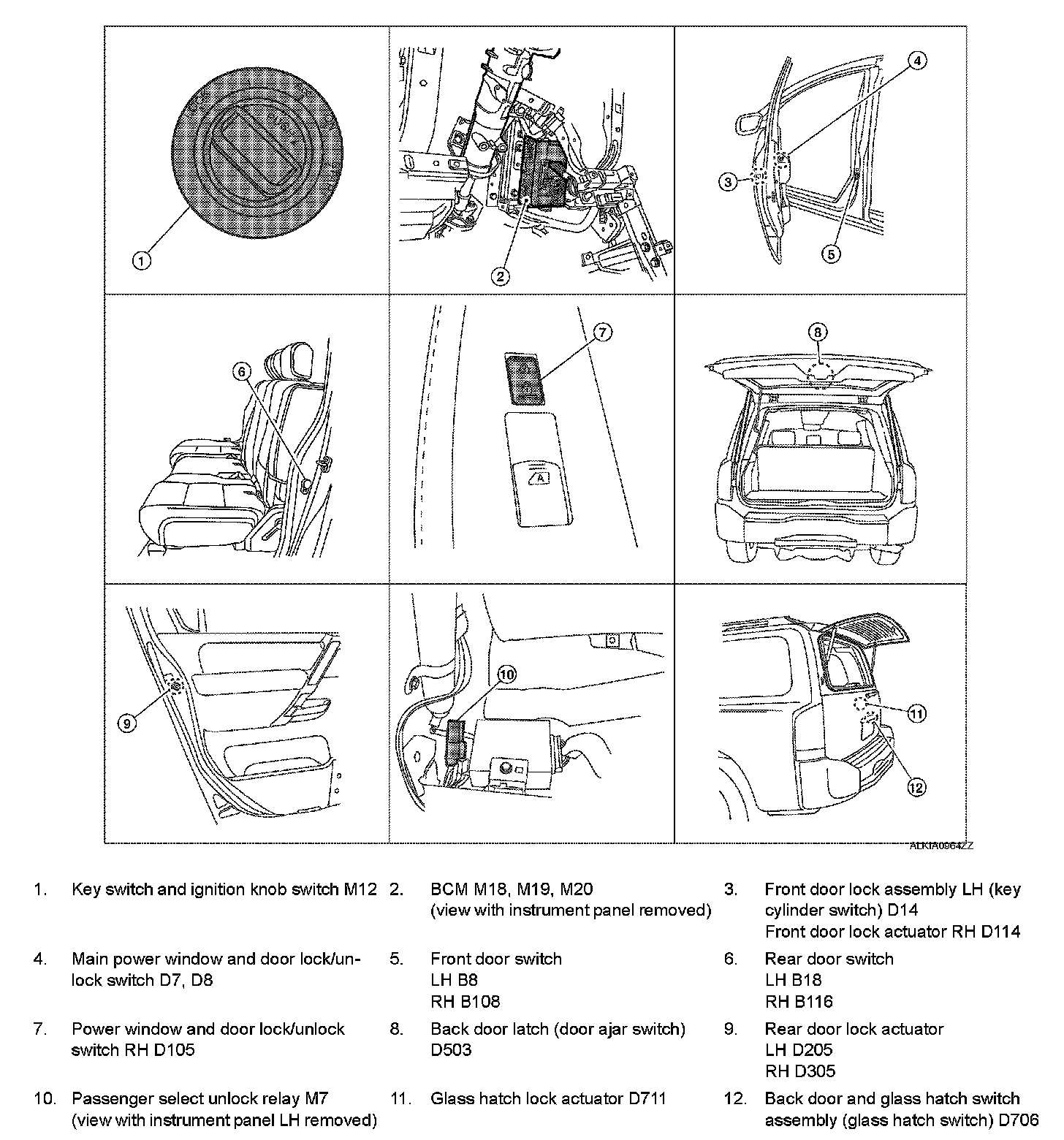 DOOR LOCK AND UNLOCK SWITCH : Component Parts Location