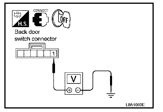 1. Disconnect back door control unit and power liftgate switch connectors.