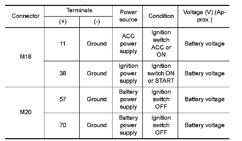3. Check voltage between BCM harness connector and ground.