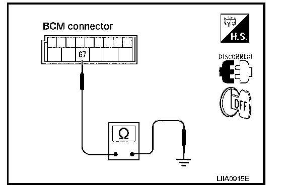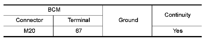 Check continuity between BCM harness connector and ground.