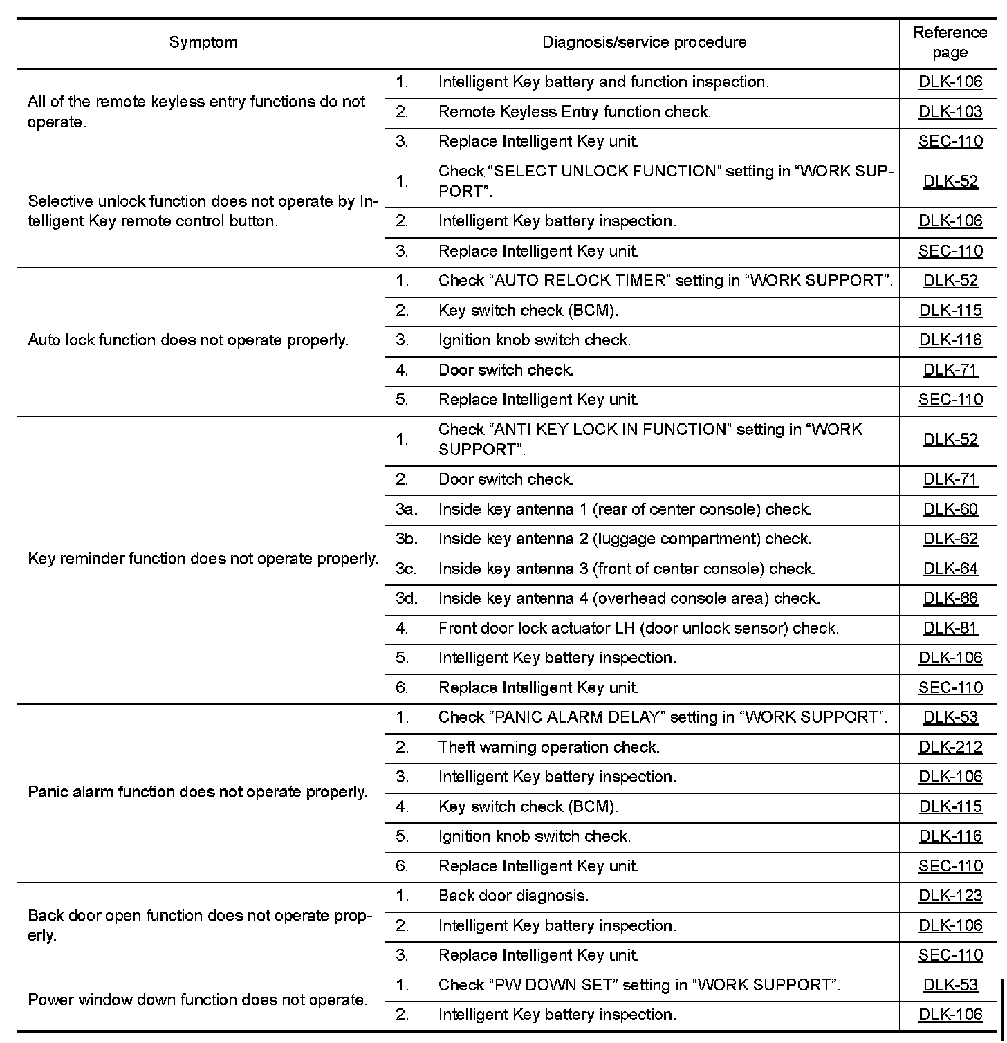 INTELLIGENT KEY : Symptom Table