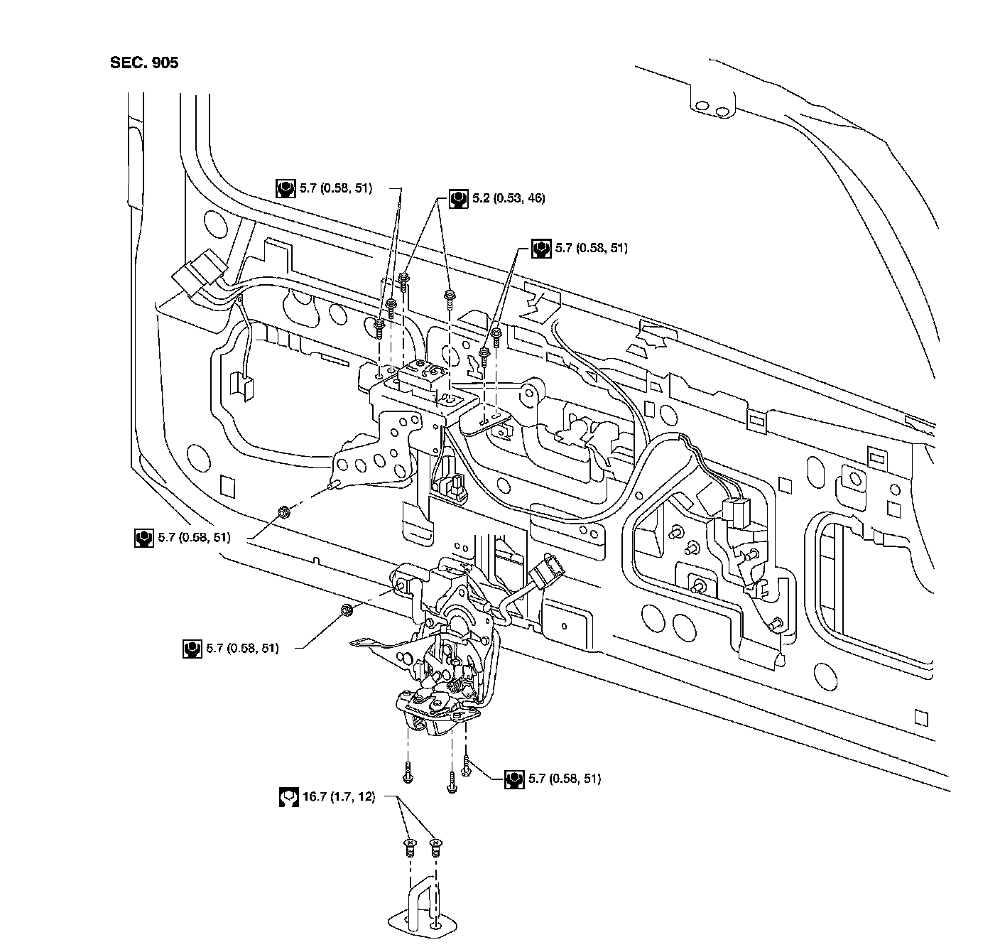 4. Remove the back door lock assembly.
