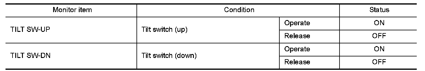 1. Select "TILT SW-UP", "TILT SW-DN" in "Data monitor" mode with CONSULT-III.