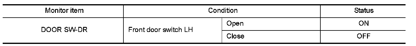 2. Check the front door switch LH signal under the following conditions.