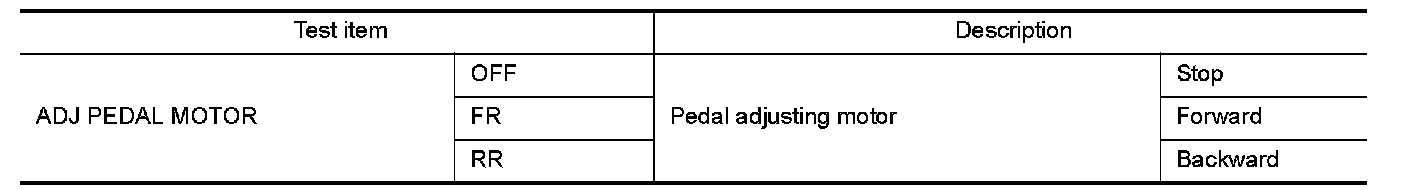 1. Select "ADJ PEDAL MOTOR" in "Active test" mode with CONSULT-III.