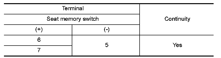 2. Check continuity between seat memory switch terminals.