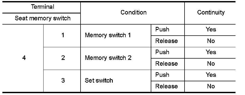 NO - Replace seat memory switch. Refer to Service and Repair.