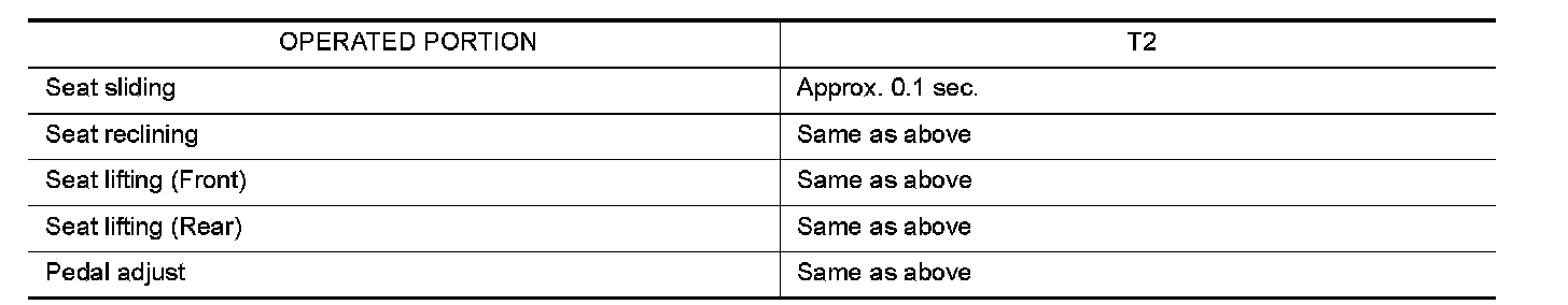 When any manual and automatic operations are not performed, if any motor operations of front seat LH or pedals are detected for T2 or more, status is judged "Output error".