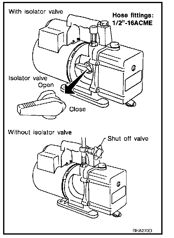 - Usually vacuum pumps have a manual isolator valve as part of the pump. Close this valve to isolate the service hose from the pump.