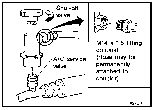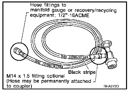 CFC-12 (R-12) A/C system. The HFC-134a (R-134a) couplers will not properly connect to the CFC-12 (R-12) system. If an improper connection is attempted, discharging and contamination may occur.
