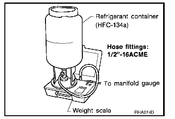 Verify that no refrigerant other than HFC134a (R-134a) and specified oils have been used with the scale. If the scale controls refrigerant flow electronically, the hose fitting must be 1/2"-16 ACME.