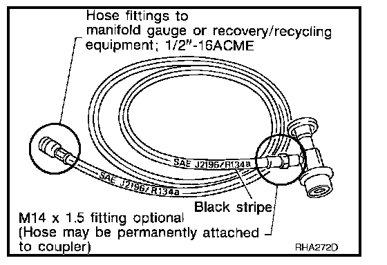 (colored hose with black stripe). All hoses must include positive shutoff devices (either manual or automatic) near the end of the hoses opposite the manifold gauge.
